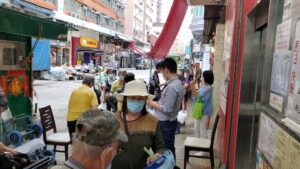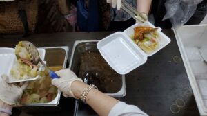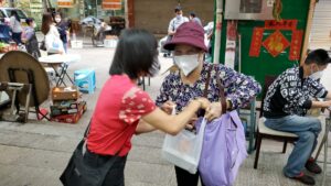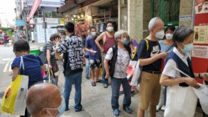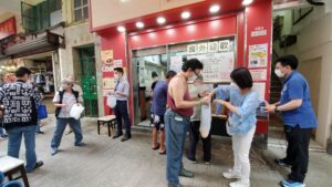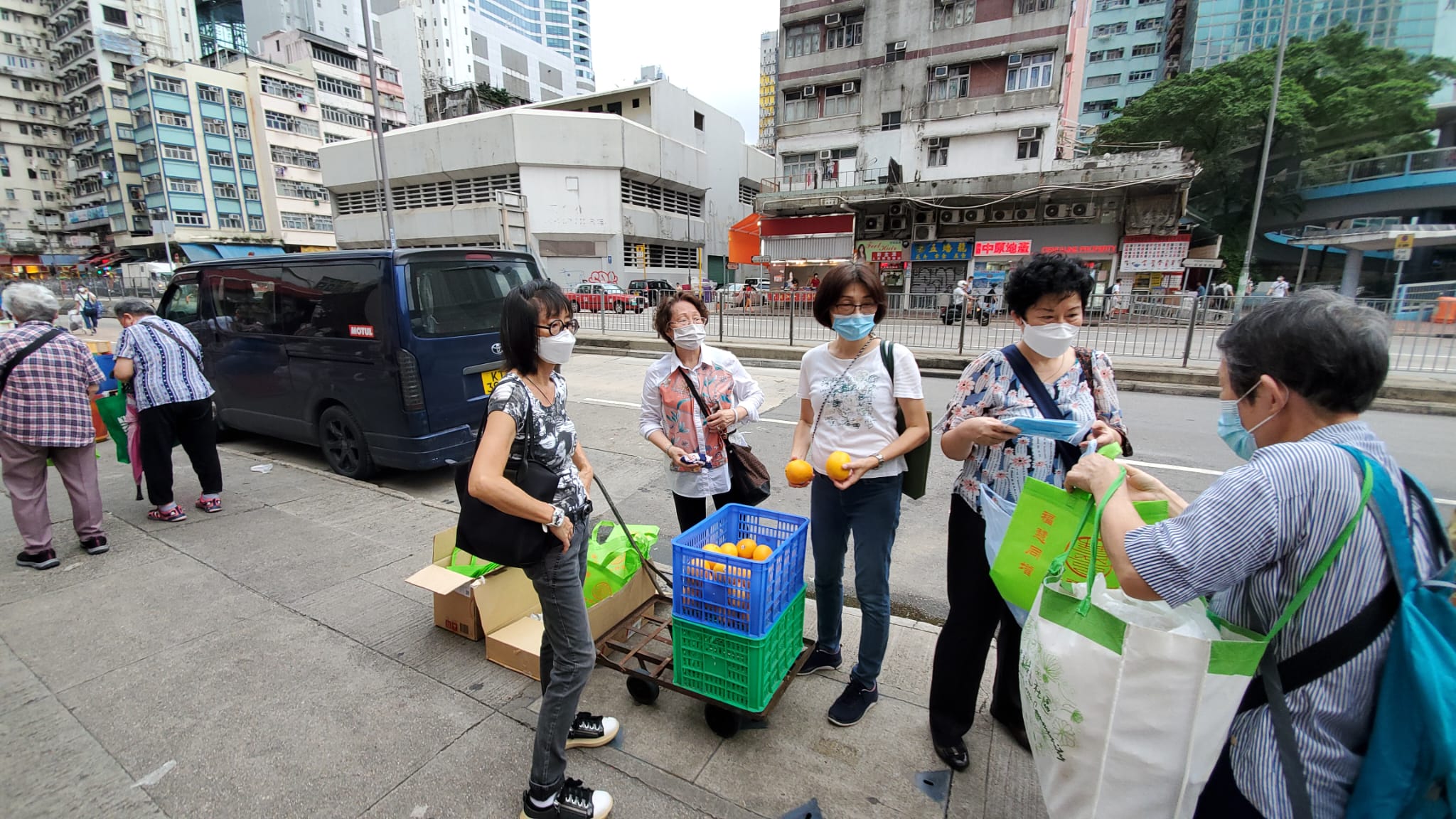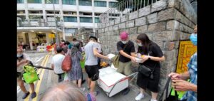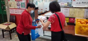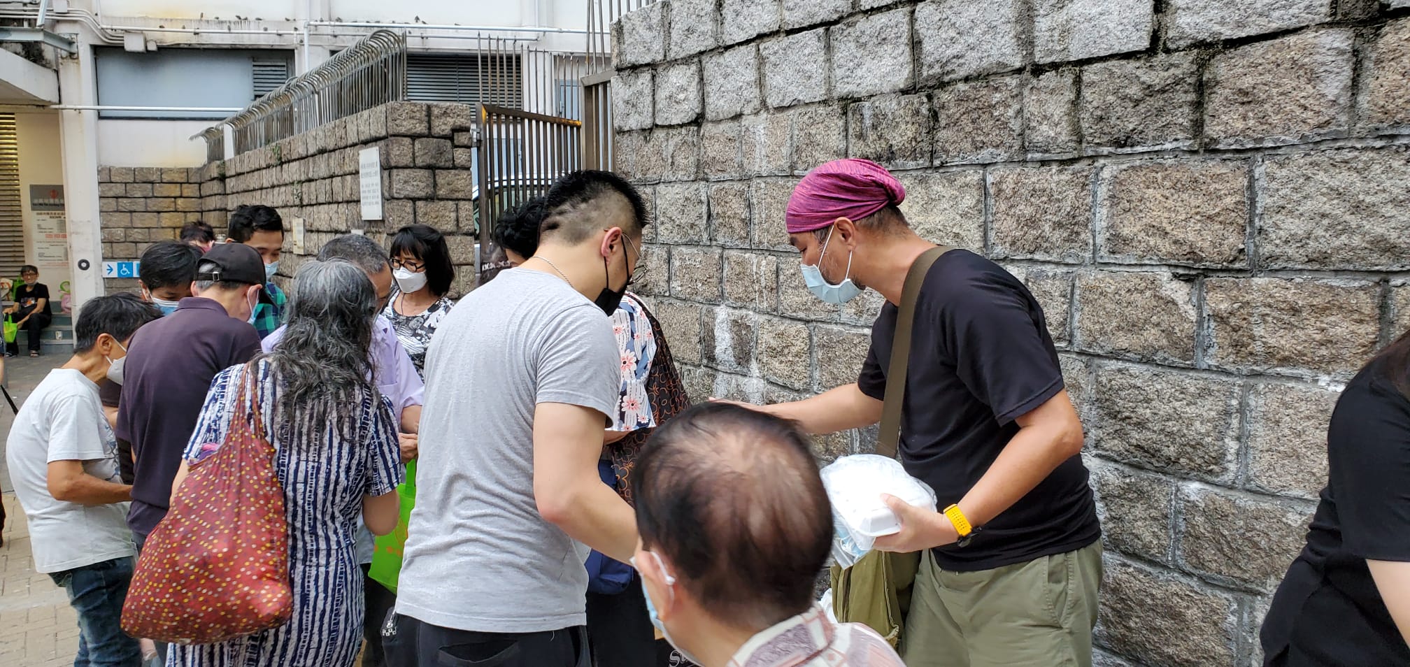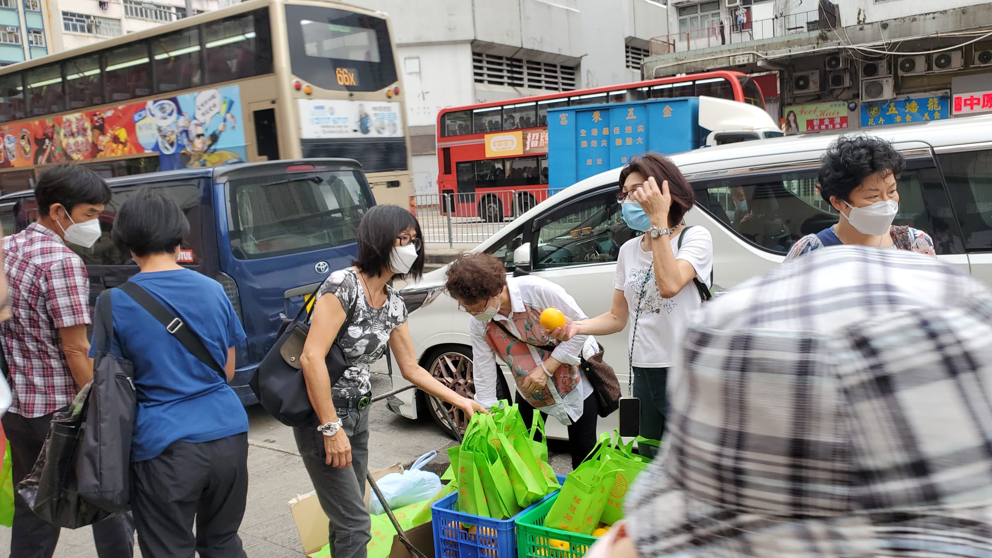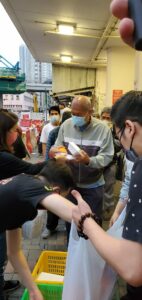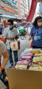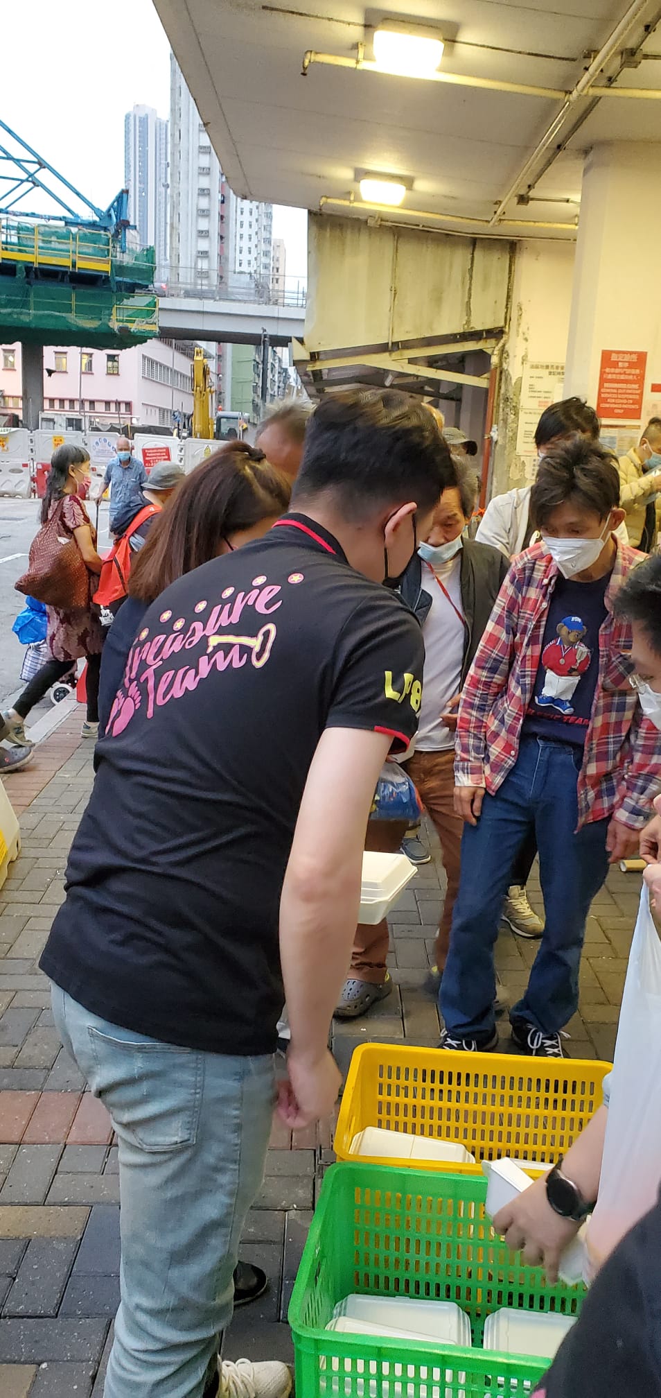 派發飯餐予長者及露宿人士,包括飯盒、生果及口罩。
