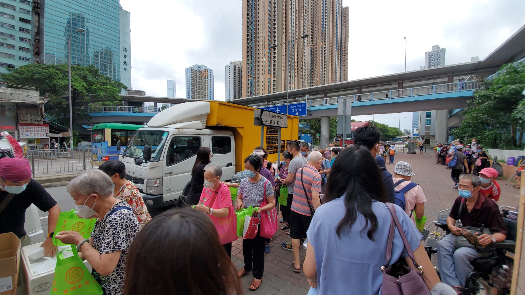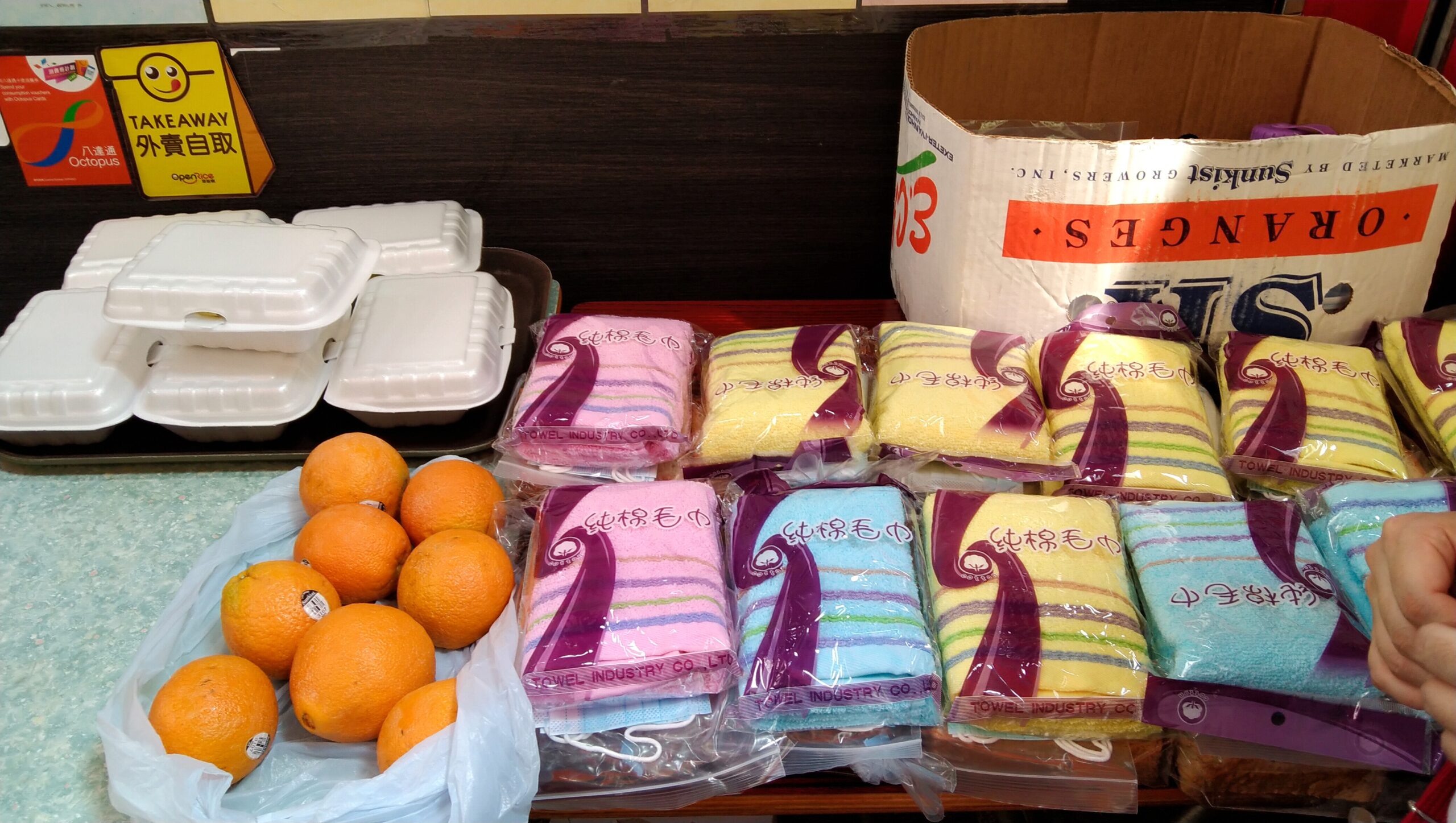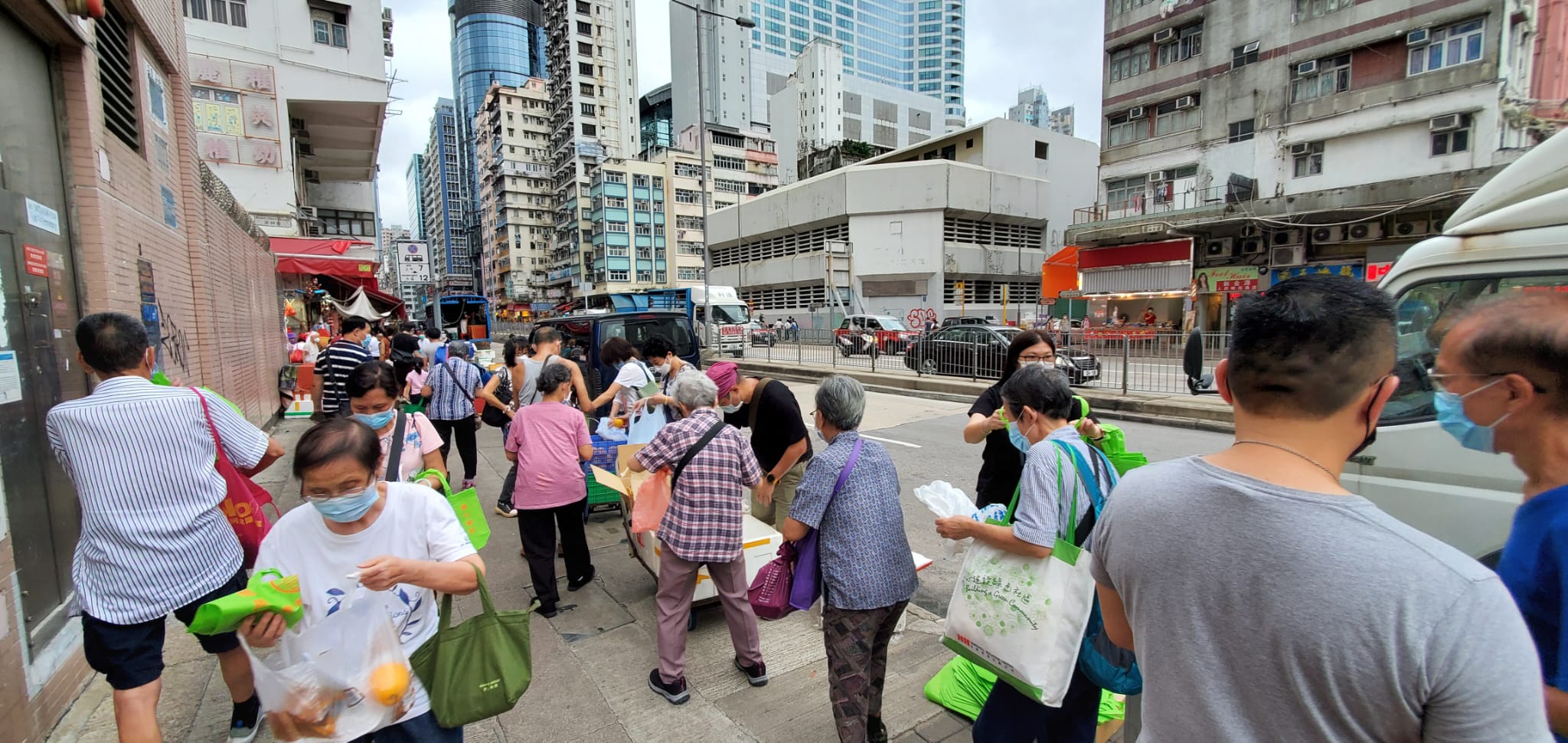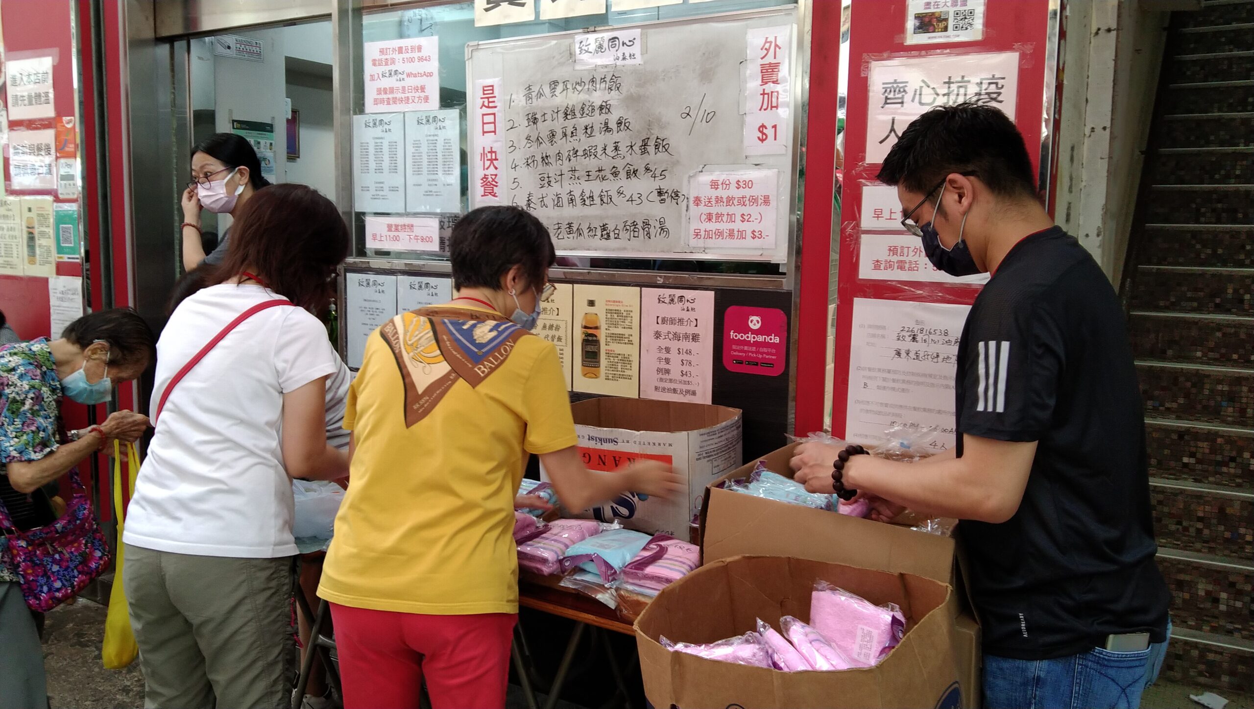 派發飯餐及物資予長者及有需要人士,包括飯盒、生果、口罩、麵包及毛巾。