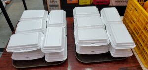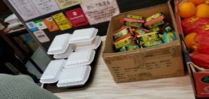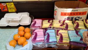 派發飯餐予長者及有需要人士,包括飯盒、生果及口罩。