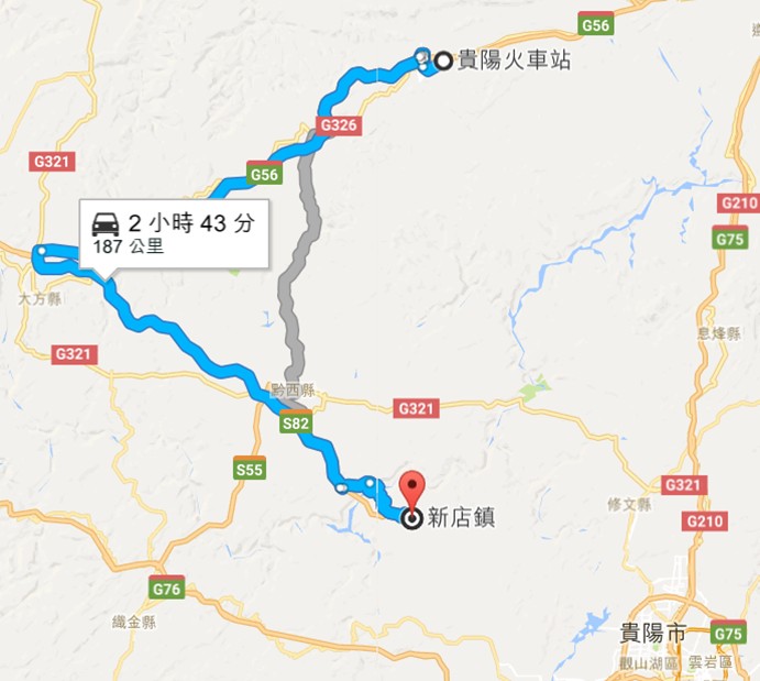 新店鎮距離貴陽火車站約3小時車程(2017年)。