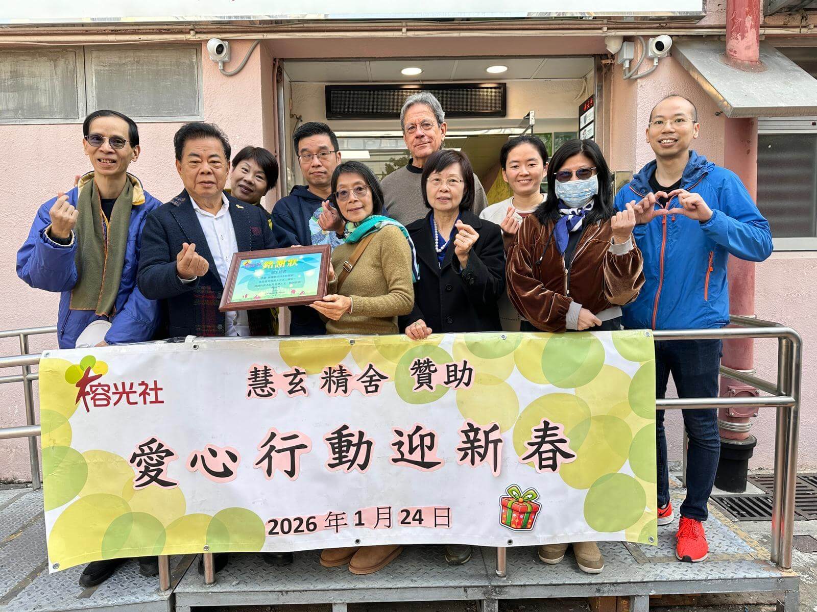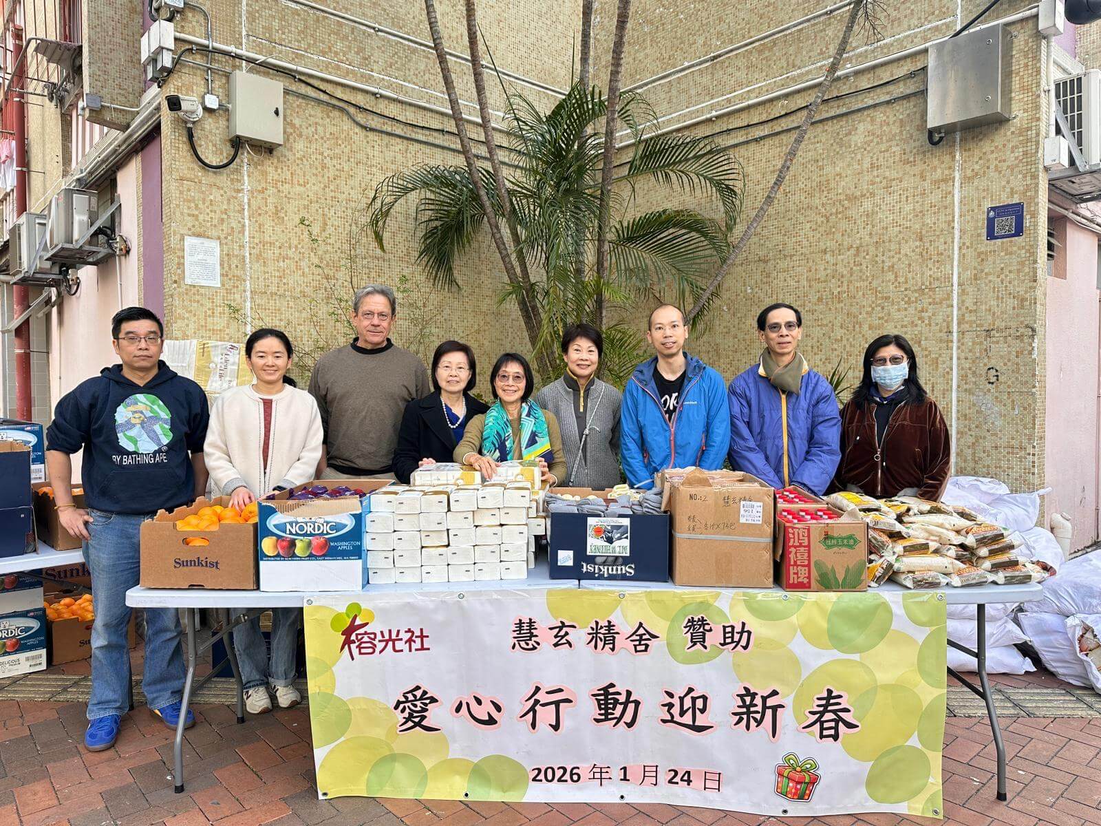 慧玄精舍赠送物资活动-合作伙伴(榕光社) 首页/慧玄精舍赠送物资活动-合作伙伴(榕光社) 2026年1月24日慧玄精舍赠送物资活动-合作伙伴(榕光社)赠送物资予长者及有需要人士,包括香米、玉米油、面饼、生果、抽纸及棉袜。 2025年1月4日慧玄精舍赠送物资活动-合作伙伴(榕光社)赠送物资予长者及有需要人士,包括生果、米、香皂、艾油、腊肠及膶肠、桂花银耳马蹄爽及桂圆银耳炖苹果。